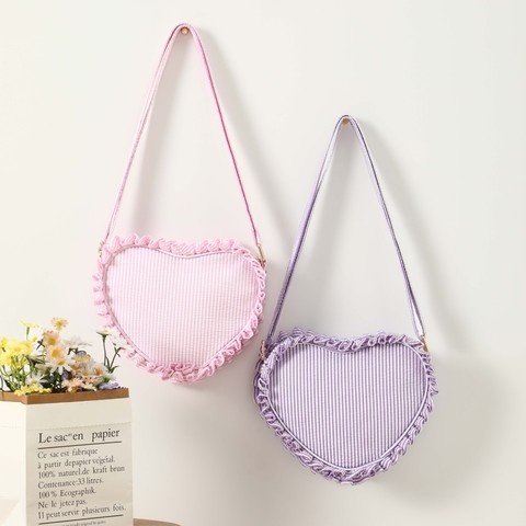 مصاصة Seersucker على شكل قلب واحدة جديدة وبسيطة حقيبة كروس بودي مكياج لطيفة على شكل قلب حقيبة مستحضرات تجميل للتخزين