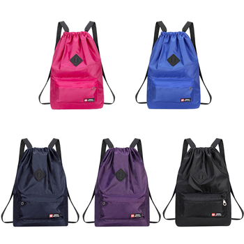 Mochila con cordón y logotipo personalizado al por mayor para deportes, viajes, gimnasio, forro de poliéster impermeable, sistema de transporte de cuerda con asa