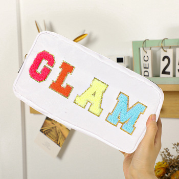 מכתב chenille רקמת pvc שקוף איפור תיק נסיעות toiletry נקי שקית קוסמטי קיבולת גדולה איפור